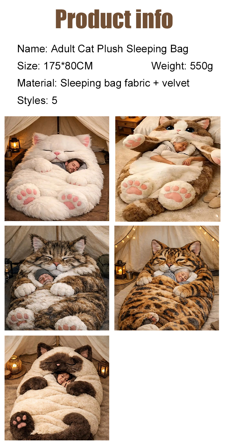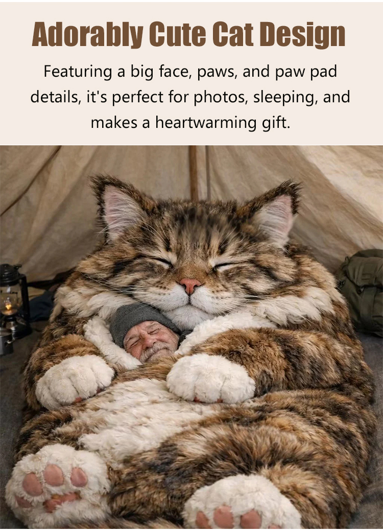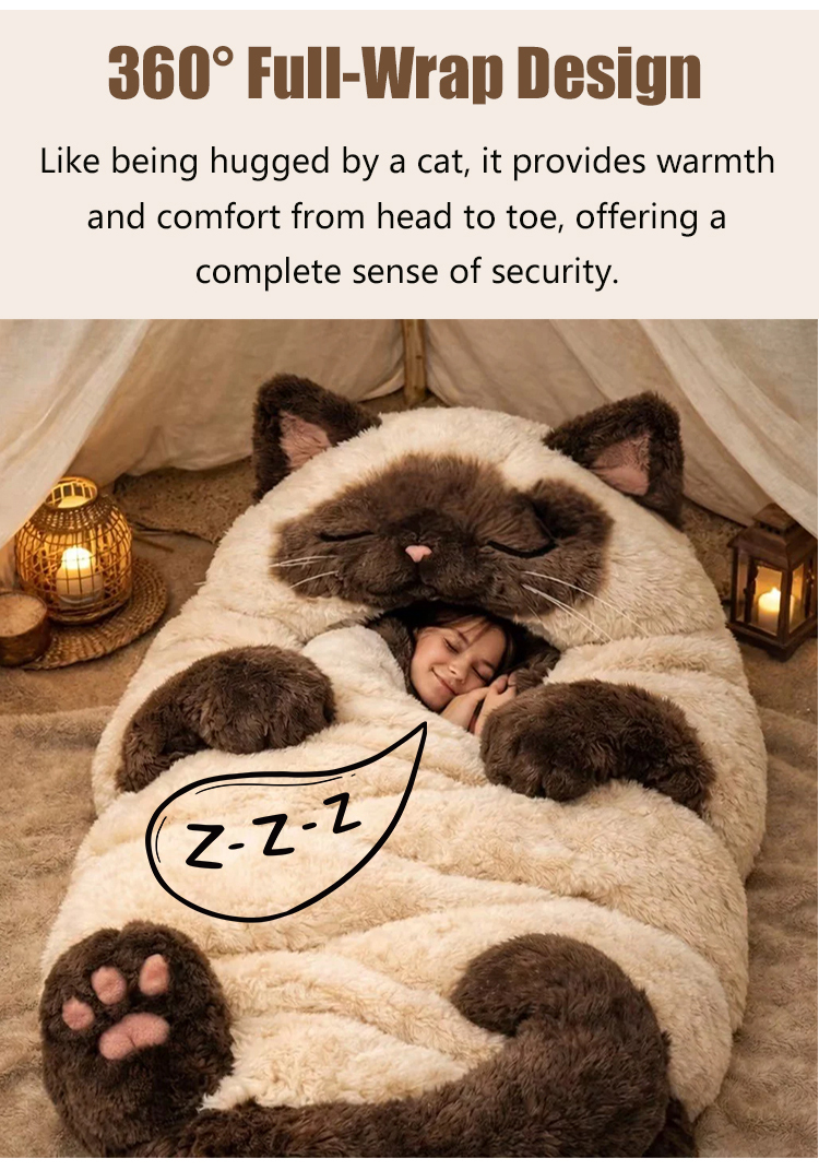 Cat-shaped sleeping bag for human use